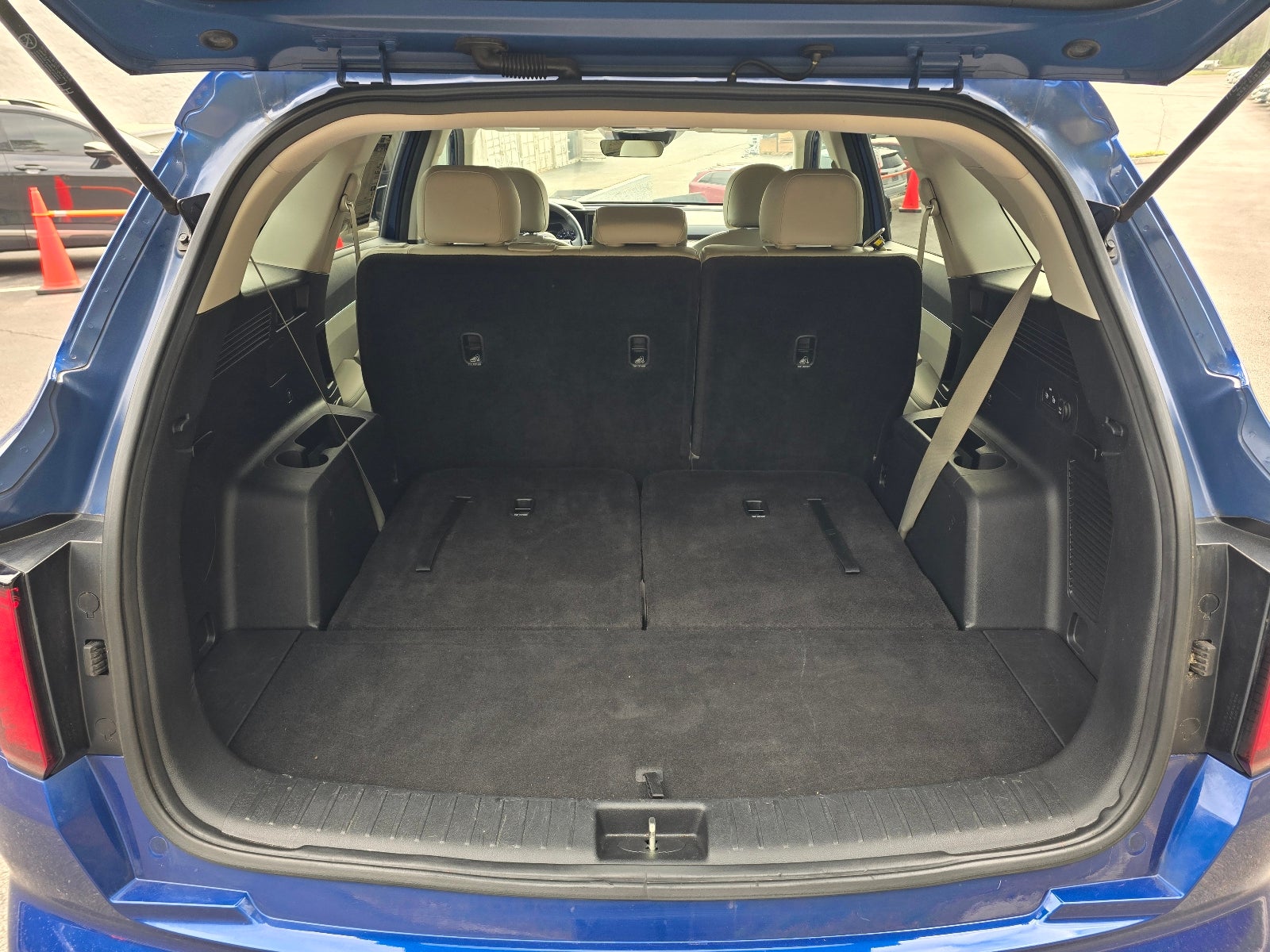 Check out all these great options: Panoramic Sunroof Package (Power Sunroof w/Power Sunshade), 18 Machine-Finished Alloy Wheels, 3.798 Axle Ratio, 3rd row seats: split-bench, 4-Wheel Disc Brakes, 6 Speakers, ABS brakes, Air Conditioning, Alloy wheels, AM/FM radio: SiriusXM, Apple CarPlay & Android Auto, Auto High-beam Headlights, Automatic temperature control, Brake assist, Bumpers: body-color, Carpeted Floor Mats, Delay-off headlights, Driver door bin, Driver vanity mirror, Dual front impact airbags, Dual front side impact airbags, Electronic Stability Control, Exterior Parking Camera Rear, Four wheel independent suspension, Front anti-roll bar, Front Bucket Seats, Front Center Armrest, Front dual zone A/C, Front reading lights, Fully automatic headlights, Heated door mirrors, Heated Front Bucket Seats, Heated front seats, Illuminated entry, Knee airbag, Leather Shift Knob, Leather steering wheel, Low tire pressure warning, Occupant sensing airbag, Outside temperature display, Overhead airbag, Overhead console, Panic alarm, Passenger door bin, Passenger vanity mirror, Power door mirrors, Power driver seat, Power steering, Power windows, Premium Leatherette Seat Trim, Radio data system, Radio: AM/FM Audio System, Rear air conditioning, Rear anti-roll bar, Rear Parking Sensors, Rear seat center armrest, Rear window defroster, Rear window wiper, Remote keyless entry, Roof rack: rails only, Security system, Speed control, Speed-sensing steering, Split folding rear seat, Spoiler, Steering wheel mounted audio controls, Tachometer, Telescoping steering wheel, Tilt steering wheel, Traction control, Trip computer, Turn signal indicator mirrors, and Variably intermittent wipers. Sapphire Blue 2021 Kia Sorento S FWD 8-Speed Automatic 2.5L I4 DGI DOHC 16V LEV3-ULEV70 191hp