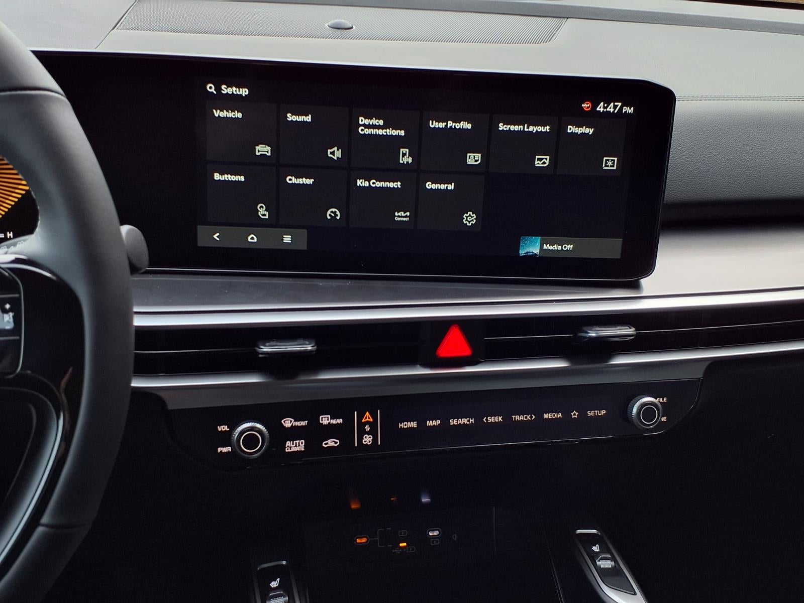 - Radio: AM/FM Standard Sound System -inc: 12.3" ccNC lite touchscreen, HD Radio, Bluetooth® w/audio remote control, wireless Android Auto and wireless Apple CarPlay, voice recognition, modem, Sirius XM, modem, Kia Connect, Over-The-Air Updates (OTA), 6 speakers and USB