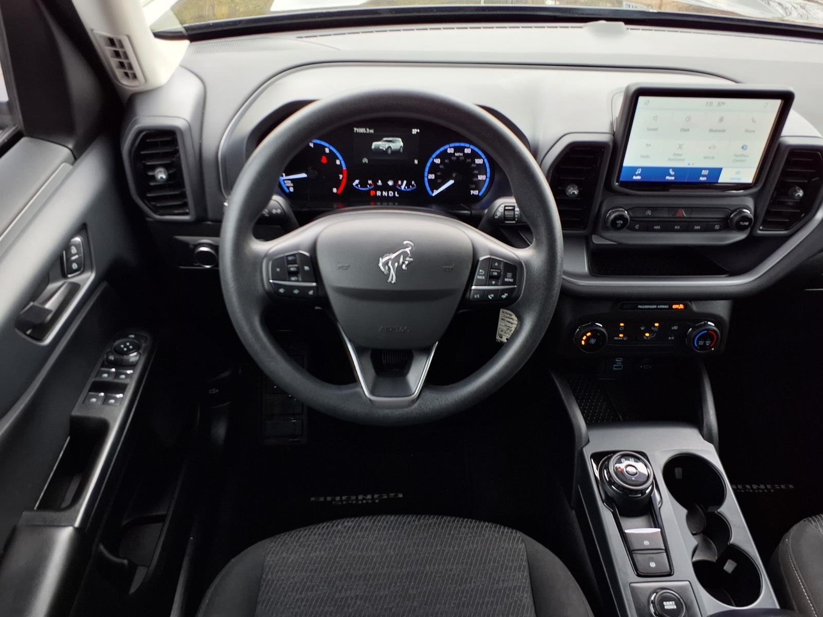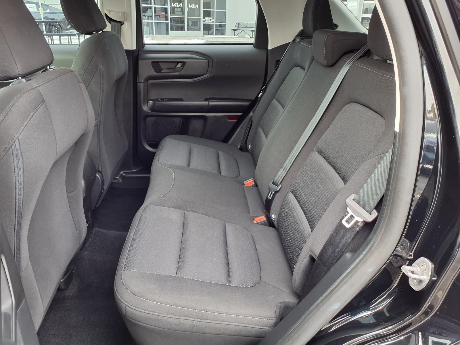 Check out all these great options: Equipment Group 100A, 3.80 Axle Ratio, 4-Wheel Disc Brakes, 6 Speakers, ABS brakes, Air Conditioning, Alloy wheels, AM/FM radio, AM/FM Stereo, Auto High-beam Headlights, Brake assist, Cloth Front Bucket Seats, Compass, Delay-off headlights, Driver door bin, Driver vanity mirror, Dual front impact airbags, Dual front side impact airbags, Electronic Stability Control, Emergency communication system: SYNC 3 911 Assist, Exterior Parking Camera Rear, Four wheel independent suspension, Front anti-roll bar, Front Bucket Seats, Front Center Armrest, Front reading lights, Fully automatic headlights, Illuminated entry, Knee airbag, Low tire pressure warning, Occupant sensing airbag, Outside temperature display, Overhead airbag, Overhead console, Panic alarm, Passenger door bin, Passenger vanity mirror, Power door mirrors, Power steering, Power windows, Radio data system, Rear anti-roll bar, Rear reading lights, Rear window defroster, Rear window wiper, Remote keyless entry, Roof rack: rails only, Security system, Speed control, Speed-sensing steering, Speed-Sensitive Wipers, Split folding rear seat, Steering wheel mounted audio controls, SYNC 3 Communications & Entertainment System, SYNC 3/Apple CarPlay/Android Auto, Tachometer, Telescoping steering wheel, Tilt steering wheel, Traction control, Trip computer, Variably intermittent wipers, and Wheels: 17 Sparkle Silver. Shadow Black 2022 Ford Bronco Sport 4WD 8-Speed Automatic 1.5L EcoBoost
