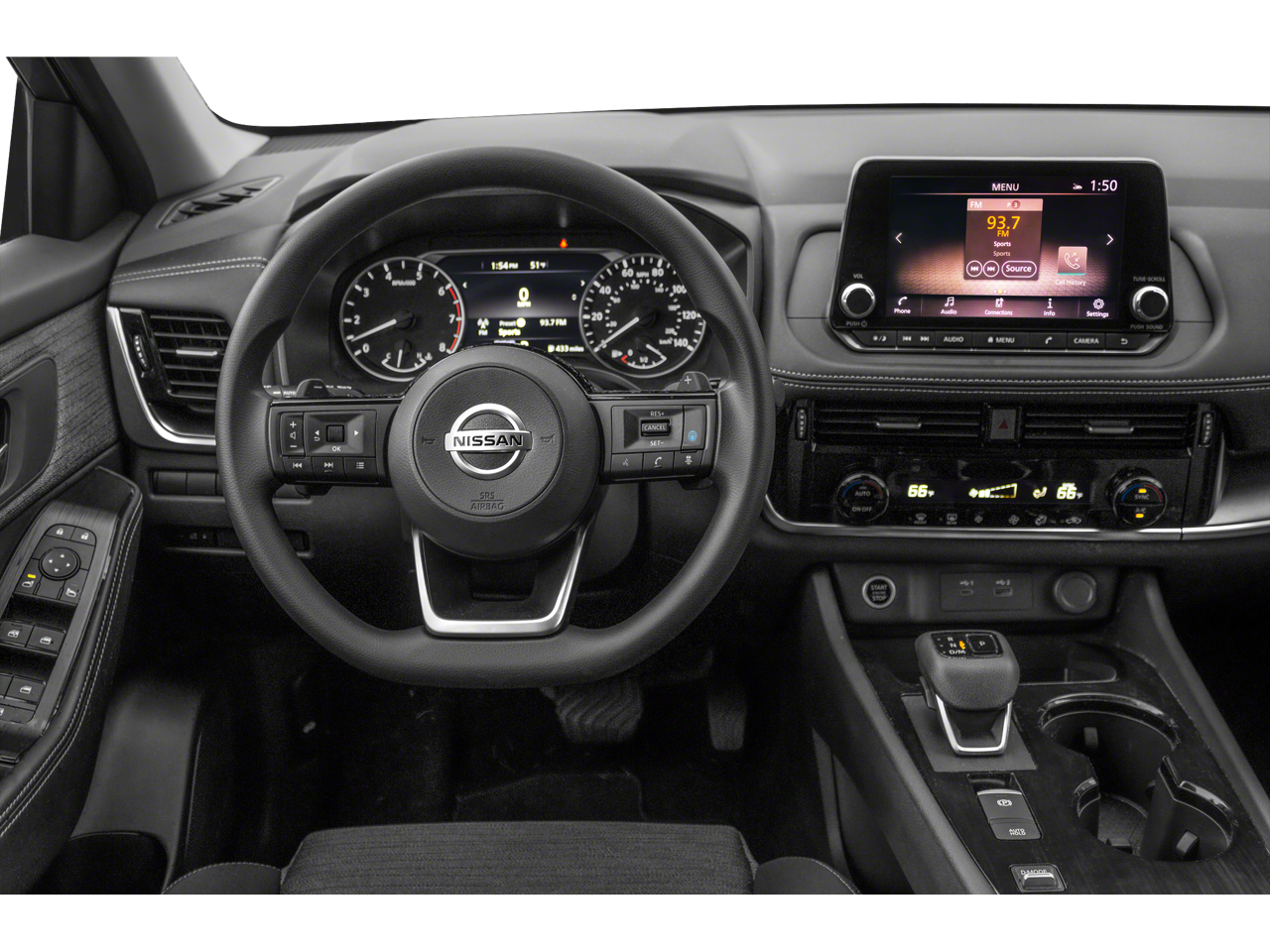 Check out all these great options: SV Premium B Package (Heated Driver & Front Passenger Seats, Heated Leather Wrapped Steering Wheel, Leatherette Door Trim Inserts w/Stitch, Panoramic Moonroof, Power Liftgate, PRIMATEX Leatherette Seat Trim, Rear Door Sunshades, Rear Personal Lights, Security Alarm, and Silver Painted Roof Rails), 18 Aluminum Alloy Wheels, 4-Wheel Disc Brakes, 5.604 Axle Ratio, 6 Speakers, ABS brakes, Air Conditioning, Alloy wheels, AM/FM Radio, AM/FM radio: SiriusXM, Auto High-beam Headlights, Automatic temperature control, Black Splash Guards (Set of 4), Brake assist, Bumpers: body-color, Chrome Rear Bumper Protector, Cloth Seat Trim, Delay-off headlights, Driver door bin, Driver vanity mirror, Dual front impact airbags, Dual front side impact airbags, Electronic Stability Control, Emergency communication system: NissanConnect Services, Floor Mats w/1-Piece Cargo Area Protector, Four wheel independent suspension, Front anti-roll bar, Front Bucket Seats, Front Center Armrest, Front dual zone A/C, Front reading lights, Fully automatic headlights, Heated door mirrors, Illuminated entry, Knee airbag, Low tire pressure warning, NissanConnect featuring Apple CarPlay and Android Auto, Occupant sensing airbag, Outside temperature display, Overhead airbag, Overhead console, Panic alarm, Passenger door bin, Passenger vanity mirror, Power door mirrors, Power driver seat, Power steering, Power windows, Radio data system, Rear anti-roll bar, Rear Parking Sensors, Rear seat center armrest, Rear side impact airbag, Rear window defroster, Rear window wiper, Remote keyless entry, Retractable Cargo Cover, Speed control, Speed-Sensitive Wipers, Split folding rear seat, Spoiler, Steering wheel mounted audio controls, Tachometer, Telescoping steering wheel, Tilt steering wheel, Traction control, Trip computer, and Variably intermittent wipers. Brilliant Silver Metallic 2023 Nissan Rogue SV FWD CVT with Xtronic 1.5L I3 Turbocharged DOHC 12V LEV3-ULEV50 201hp